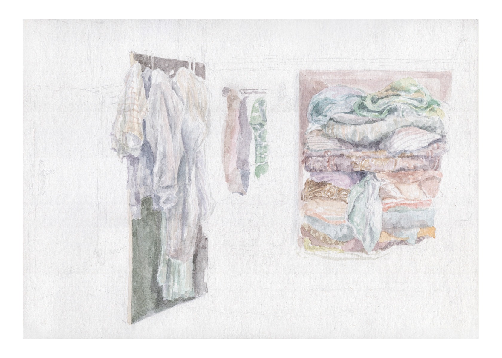 Solo exhibitions including "Inside, Outside" at O Gallery, Tehran, and participation in group exhibitions such as the 8th Damoonfar Painting Biennale (3rd prize winner). Focused on watercolor paintings exploring the balance between control and spontaneity, blending Iranian and Western visual traditions.